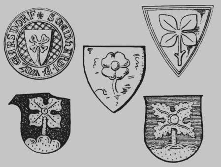Im Laufe der fünf Jahrhunderte der Watzmannsdorfer Zeit entwickelten sich Variationen. So können der Dreiberg oder die Samenkapsel entfallen. Die Blattform kann kleeblattartig abgerundet, gezackt, eingekerbt oder gelappt sein: