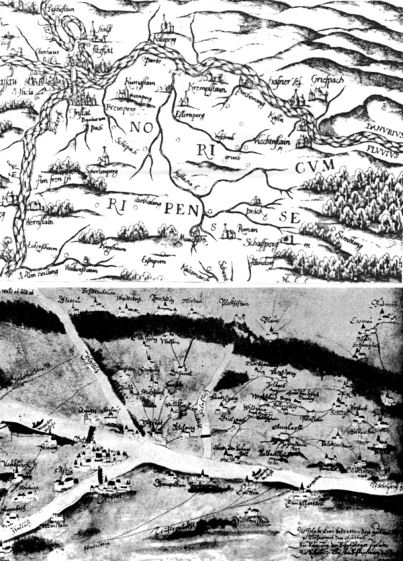 Die untere Karte des 16. Jahrhunderts aus dem Schwarzenbergischen Archiv in Winterberg zeigt zwischen „Ylzstat“ und „Erlafluß“ „Khelperg“.