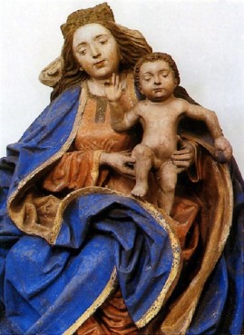Die Thyrnauerin ist nach der Zeit den Schönen Madonnen der Spätgotik ein Neuanfang. Diese Zeit wird so bezeichnet nach den eleganten, in s-förmiger Körperhaltung stehenden, aristokratischen Madonnen mit ihren verinnerlichten Gesichtern. Ganz anders unsere Kriechbaum-Madonna. Maria sitzt mit ihrem ballhaltenden Kind wie eine bürgerliche Mutter in einem Sessel. Ihre Körperlichkeit wird sichtbar und ist nicht durch die Gewandung verdeckt. Die Halsfalten beschönigen nichts. Die knittrige, aufgewühlte Gewandung lässt die anbrechende Renaissance ahnen, die Zeit nach 1500. Diese Stilepoche wird als barocke Spätgotik bezeichnet.