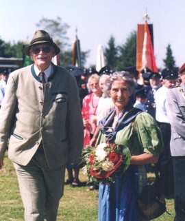 8:45 Eintreffen vor dem östlichen Friedhofstor, Begrüßung durch ein jugendliches Trachtenpärchen, das Prinzessin Theresa einen Biedermeierstrauß überreichte