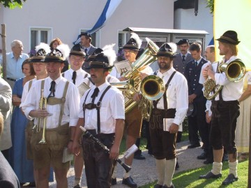 Standkonzert der Blaskapelle und der Jagdhornbläser während der Bewirtung durch den Kellberger Krieger- und Soldatenverein,