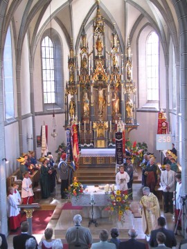 Festgottesdienst in der Pfarrkirche Sankt Blasius bei musikalischer Gestaltung durch den Männerchor mit Aufführung der Waidlermesse und Stücken der Schubert-Messe