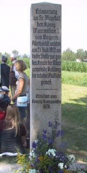 An diesen Besuch im Juli 1852 erinnert eine mannshohe Granitsäule auf der Kellberger König-Max Höhe mit folgender Inschrift: