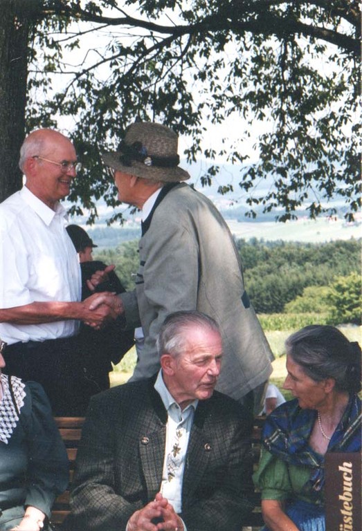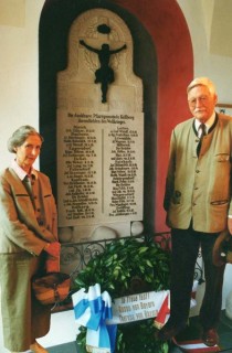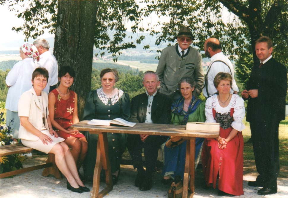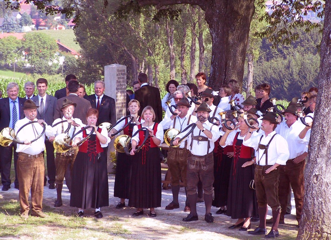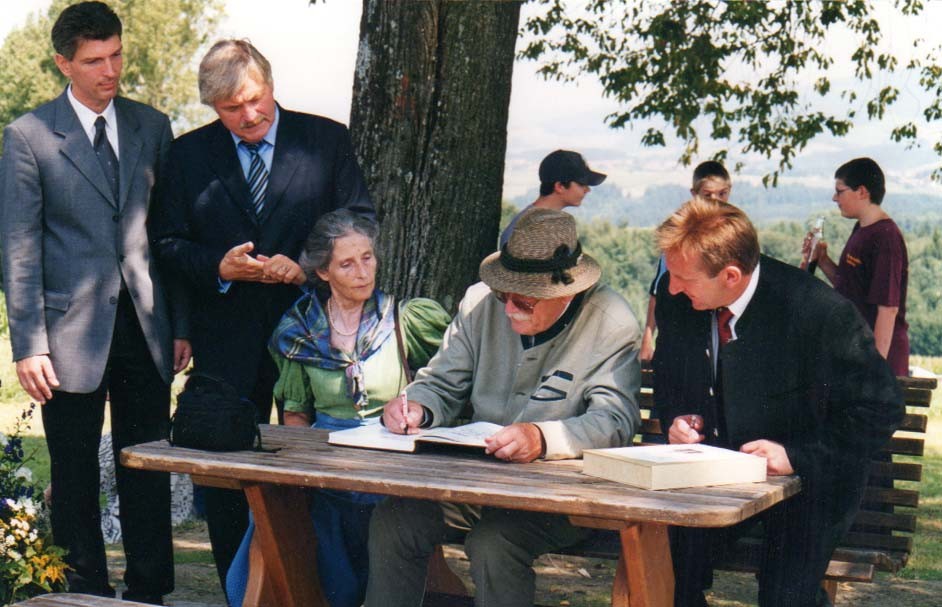 Eintragung der Gäste ins Gästebuch der Gemeinde Thyrnau vor dem Gedächtnisstein