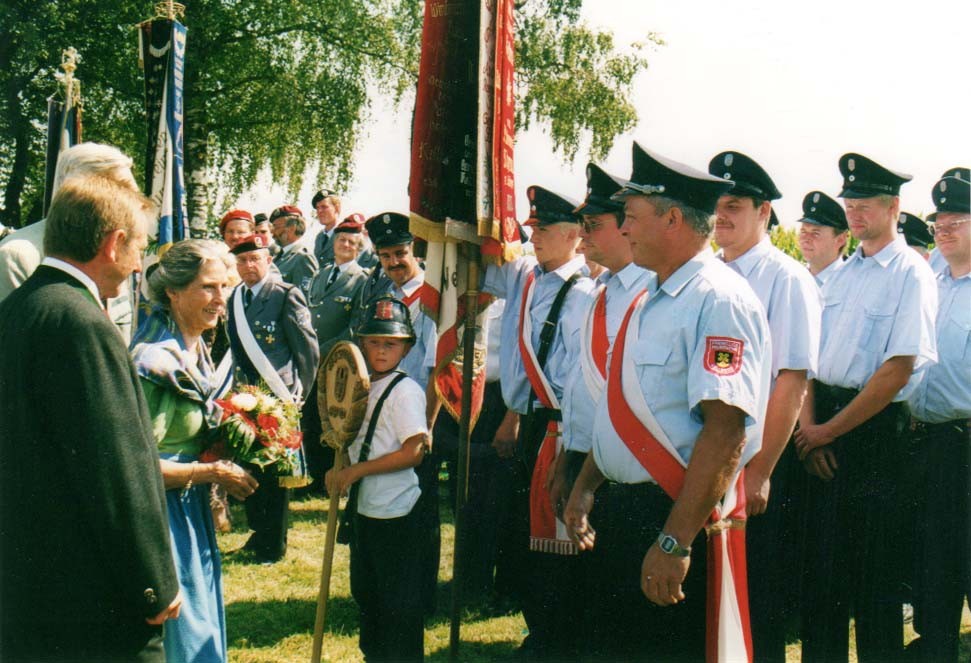 die Feuerwehren Kellberg, Thyrnau und Donauwetzdorf mit Fahnen,