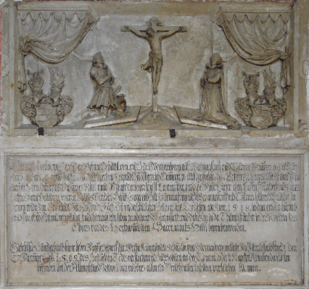 Gleichfalls zu Gedechtnus seiner lieben Freyle Schwesster Freyle Künegundt Schätzlin von Hörmansperg. welche Im Junkfrawstandt den 27. Jannuary A. 1.5.9.5. des zeillichen Todts verstorben vnd zu Voburg an der Thonna in der Marckht Khirchen daselbsten begraben ligt. Der Allmechtige Gott woll inen und üns allen ein Freliche auferstechung verleihen. Amen.“